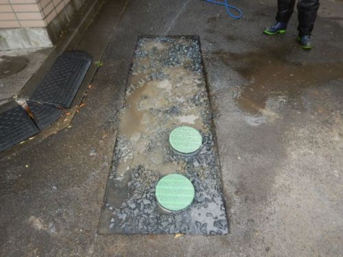無事に詰まりも解消されました。アスファルトを復旧して施工完了です。