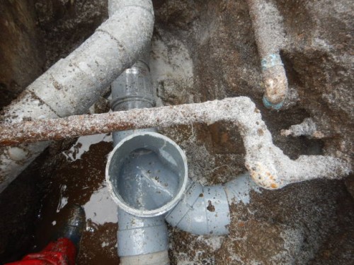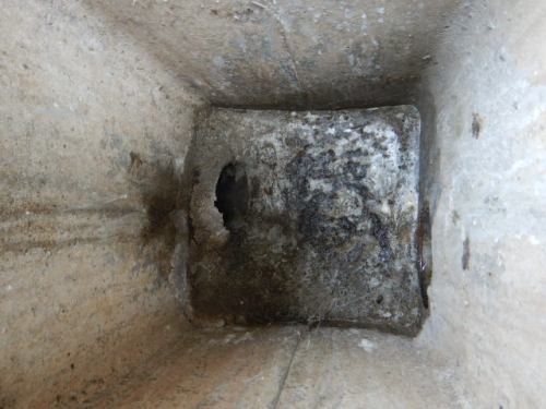 40年使用しているコンクリート桝が4か所あり、そのうち1か所で底の溝(インバート)部分が割れて排水が漏れ出ていました。