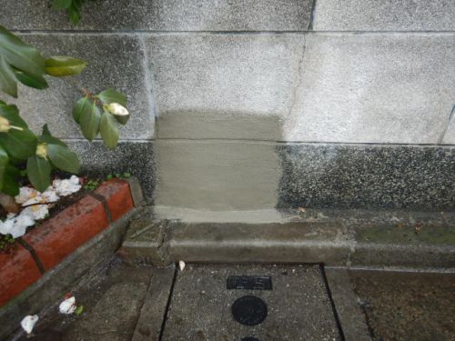 その貫通部分でステンレス鋼管の排水管が割れていたため、ブロック塀から排水が漏れていました。