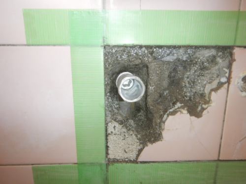 壁の向こうは浴室で蛇口付近の給湯管から水の音もするため、漏水箇所は早々に特定できたわけですが、問題は修繕方法です。